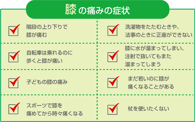 膝が痛いと、家事や仕事などの日常生活はもちろん、外出も億劫になってしまいますね。